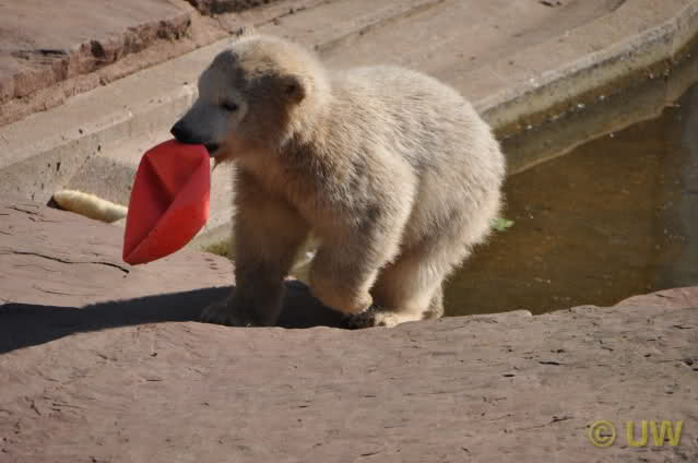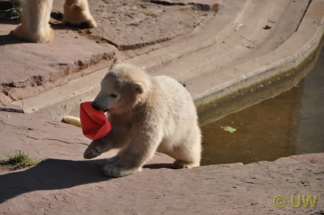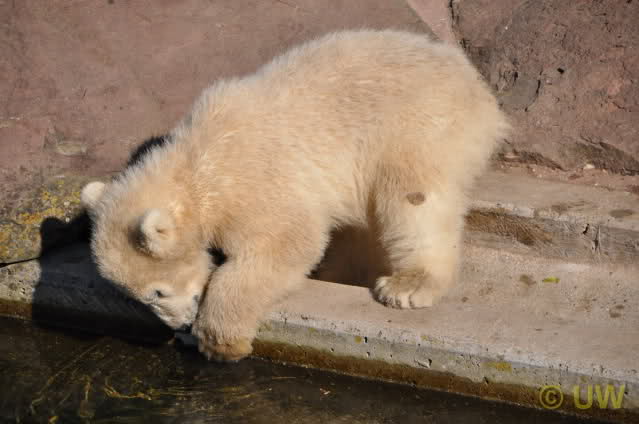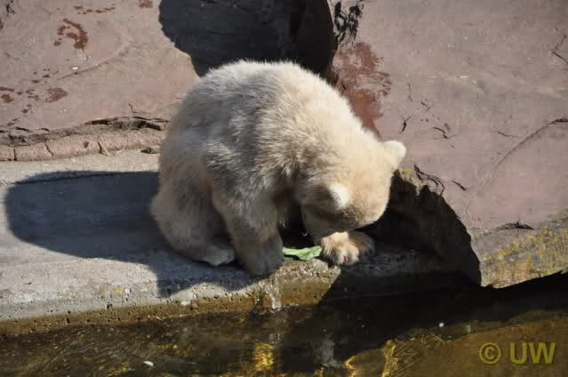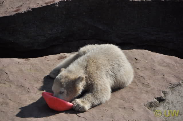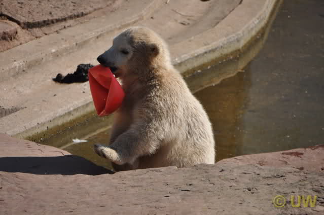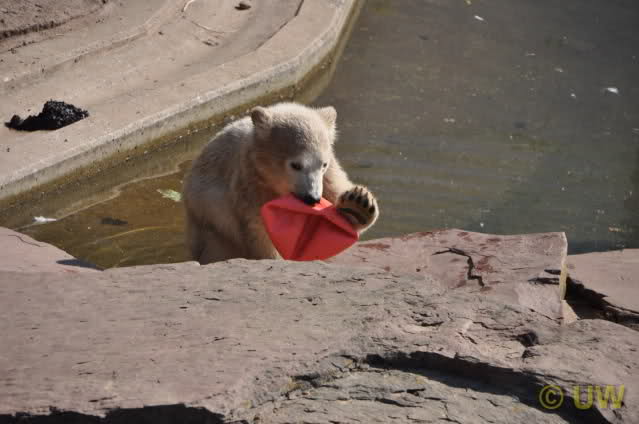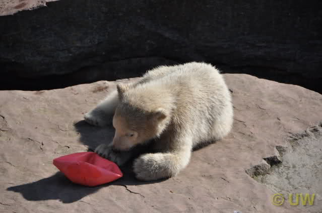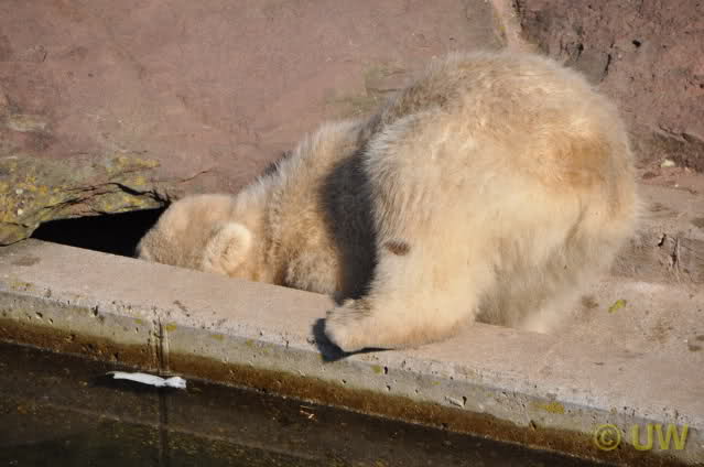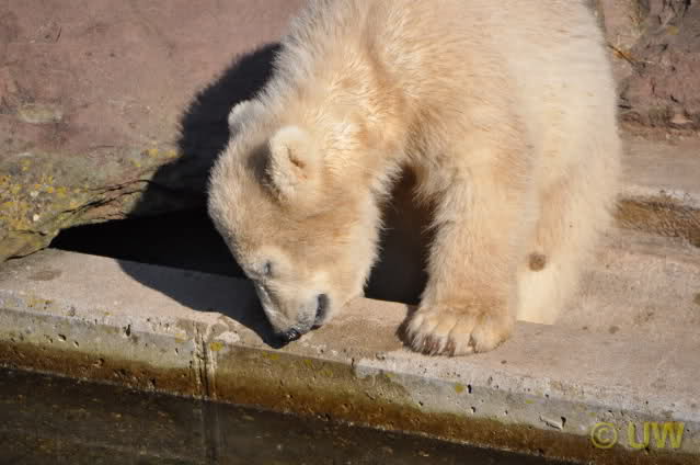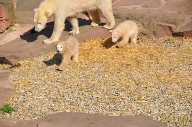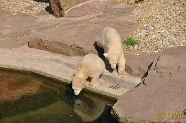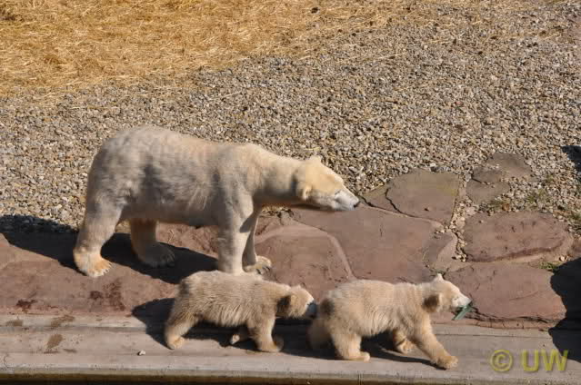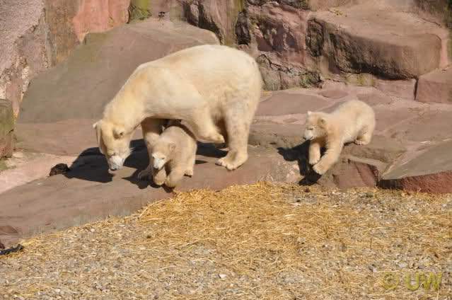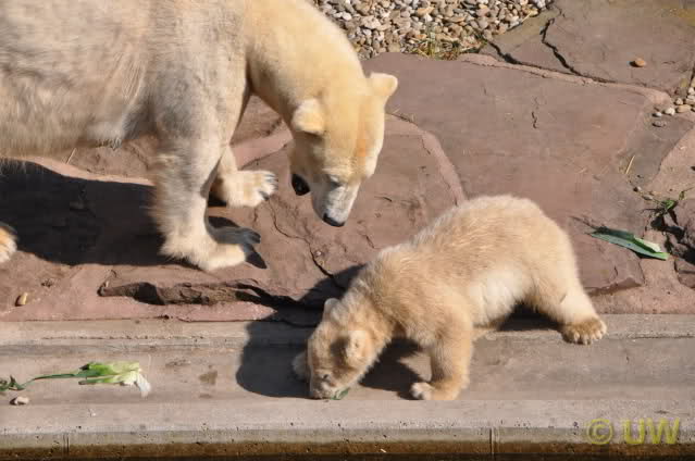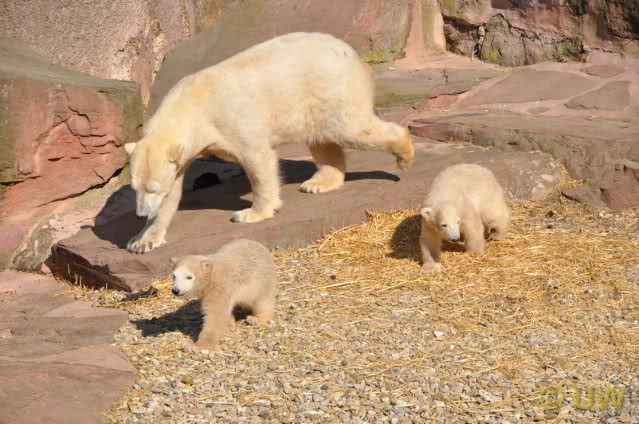 Was fuer suesse Fotos, die sollten mal ein paar Tassen von den bildhuebschen auf diesen Fotos anfertigen (der Zoo). Haben wir uns heute den halben Tag von Berlin nach Nuernberg auf der Autobahn auf Geduldsprobe stellen lassen, sahen wir bei Vera 5 Minuten die Kinder, dann wurden diese von Vera in die Hoehle geschickt und sie versperrte ihnen den Ausgang mit ihrem dicken Hintern. Als nach einer halben Stunde immer noch keine Aenderung der Situation absehbar war, gingen wir schweren Herzens weiter, nahmen noch eine Tasse mit (damit meine Kinder jeden Tag die Baerchen sehen) und quaelten uns bis 22 h zurueck.