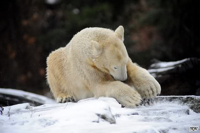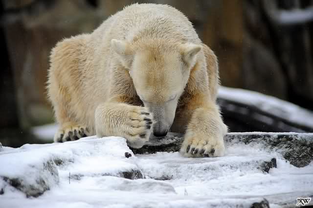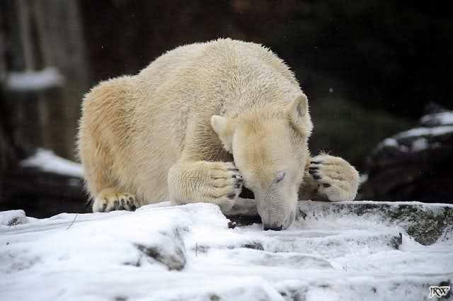 I have just admired your latest photos of our Knuti in the snow. I g0t tears in my eyes looking at the beautiful bear. I sincerely hope everything will turn out well for him this year! Once again I want to thank everybody who's been (and still are) working so hard for Knuti staying in Bärlin! Now I think I'm going to check flights to a certain city....