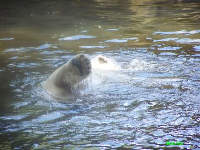 Es war zwar noch etwas früh für die Fütterung der großen Eisbären, aber ich ging schon mal hin. Noch waren nicht viele Leute da. Deshalb konnte ich in Ruhe die Eisbären beobachten und dabei die Seele baumeln lassen.