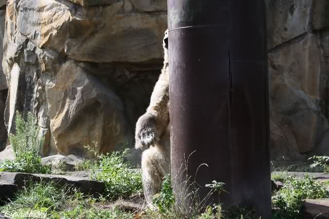 Vom Affenhaus her hörte ich einen unerhörten Krach. Eine Dame meinte, man hätte wahrscheinlich die Siamangs eingesperrt, weil deren Anlage geputzt wird. Deshalb machten die Affen ein solches Affentheater.