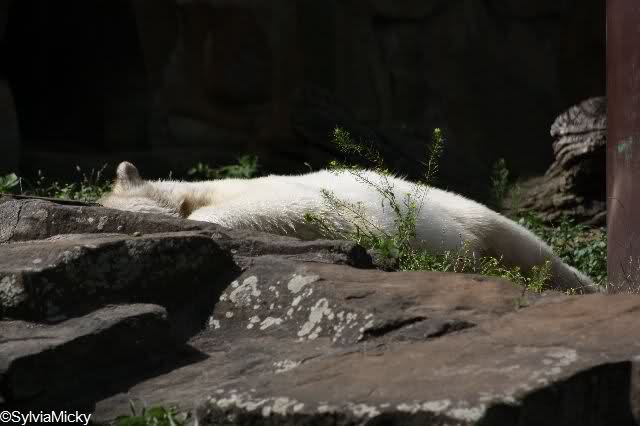 Wieder zurück zu Knut. Der schlief immer noch. Also ging ich weiter. Zuerst zu den Seelöwen. Jemand hatte schon gesagt, dass es wieder einen kleinen Seelöwen gäbe, wieder ein Männchen. Den wollte ich natürlich sehen. Aber leider gab es noch nichts zu sehen.