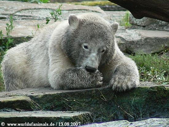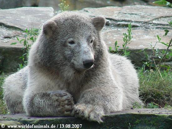 Was hatte der kleine Eisbär fröhliche Augen! Manchmal sah es aus als ob er lächelt. Ich weiß natürlich das Tiere nicht lächeln können dafür fehlen ihnen die entsprechenden Gesichtsmuskeln, aber in den Augen der Tiere kann man lesen, wenn man will. Meiner Meinung rutscht er in eine handfeste Depression, gibt's bei Tieren auch. Hoffentlich kommt Herr Dörflein bald zurück!