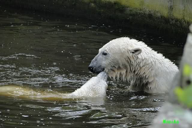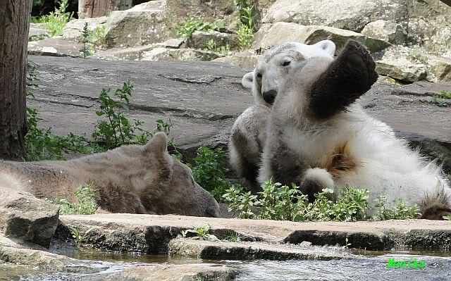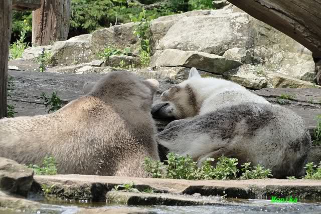 I was in Zoo at saturday afternoon too. The two polar bear kids did sleep, so I watched the three little polar wolves. You can watch one of my videos by Youtube now. Take a look to the link in Berlin Zoo thread.