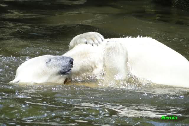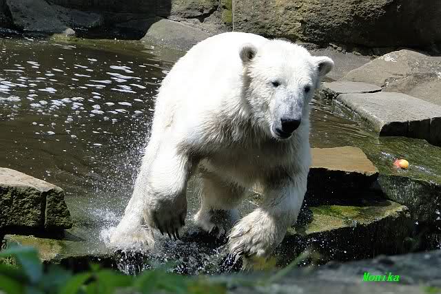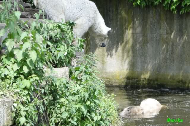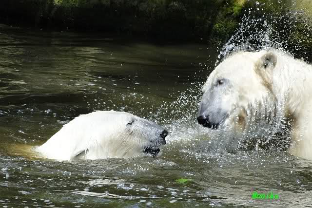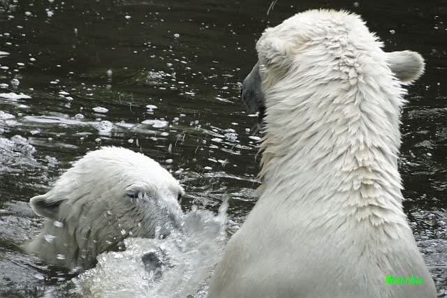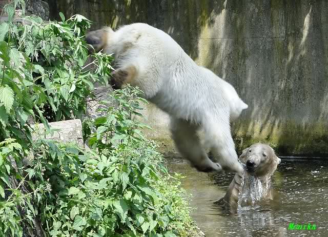 Gianna sprang gerade ins Wasser, als ich am späten Vormittag im Zoo ankam. Knut war bereits im Wasser. Sie sollen morgens auch schon zusammen gespielt haben.