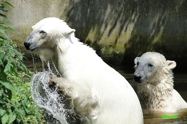 Nach den Wasserspielen sahen beide aus, als wenn sie in Bleichmittel gebadet haben. Schön Eisbärweiß.