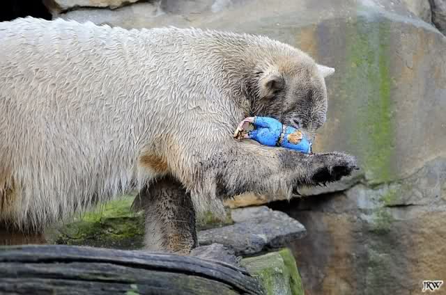 Für mich immer wieder faszinierend zu sehen, wie liebevoll Knut mit solchen Spielzeugen umgeht. Fast inniger als es je Menschenkinder machen können. Es sind Bilder die einfach bewegen.