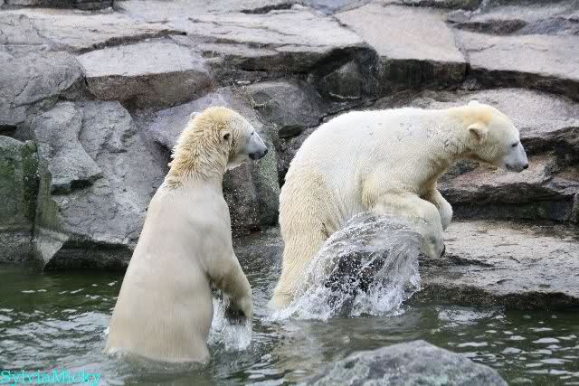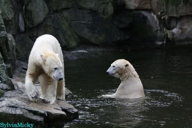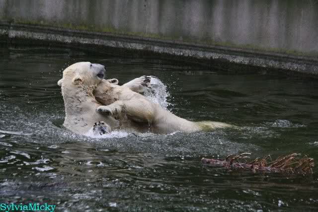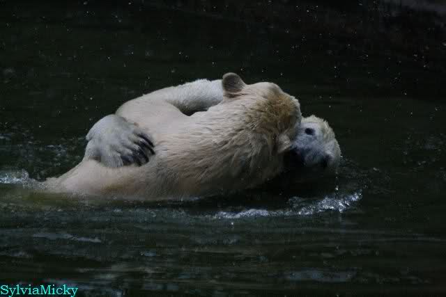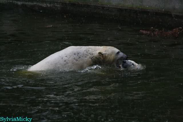 Dear Sylvia, it was all worth it to wait a bit longer for these wonderful pics. And OK, a mother should not bite her son, but maybe she only wanted to motivate him for some "actions" (especially given his "lazy" day yesterday). The think that pleases me the most is the fact that apparently, Knuti can often make stop Tosca from making her strange "dancing". I still hope and pray that one day he will be successful to stop it entirely.
