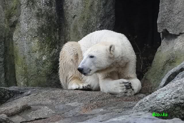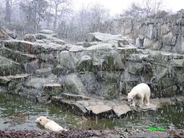 Dear Monika, thank you so much for these pics. Well, maybe, Knuti was only tired and needed some time for himself. But nevertheless, it is a bit sad to see all efforts of Tosca becoming in vain. And by the way, O JEE, you got serious snow again there in Berlin. Although I know that you are not the freezing kind, please make sure to put on enough warm clothes to avoid catching a cold or so. Na ja, I must confess, that this request is a tad selfish: if you cannot go to Zoo, I am running the risk of missing my daily portion of nice pics.