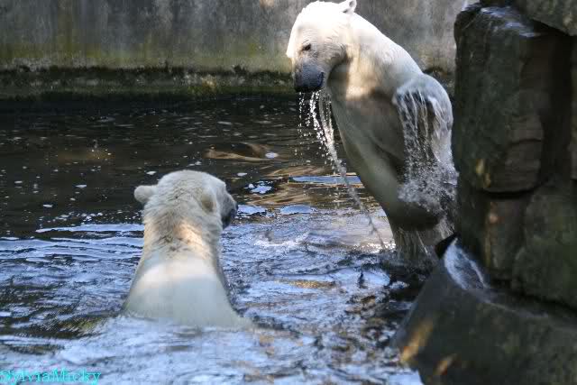 So wie es zur Zeit ist, meine ich, dass Knut wirklich schon eine Macke hat und auch nahe dran ist, verhaltensgestört zu werden. Was ist, wenn Gianna wieder nach München muß? Wenn Tosca von ihren beiden Freundinnen getrennt wird und alle drei Eisbären-Mädels unter dieser Trennung leiden?