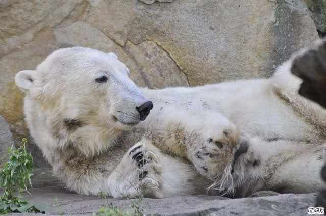 Knut ist jetzt schon sehr bewegungsfaul. Jedem anderen Tier, was so lange Krallen hat (weil es so wenig läuft, bzw. in dem Gehege laufen kann) wird eine Maniküre verordnet. Pfotenpflege ist sehr wichtig für alle Tiere, sonst klappt es mit dem Laufen irgendwann gar nicht mehr. Dann die Hitze im Sommer in den Gehegen ohne irgendwelche Möglichkeiten, sich zurück zu ziehen. Das ist Tierquälerei!!! Da müßte sich PETA einschalten.