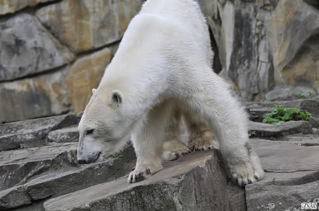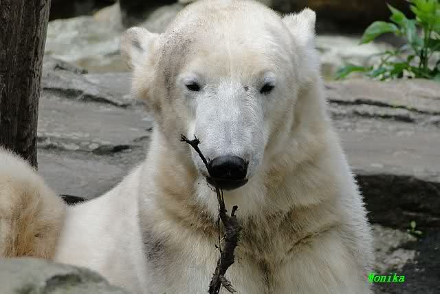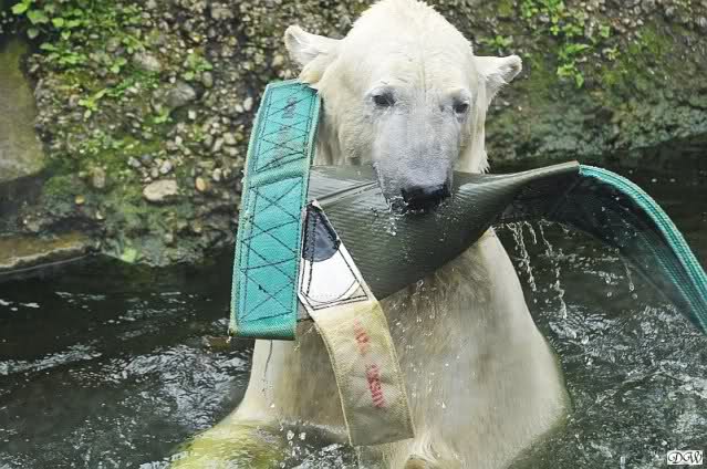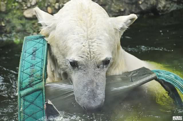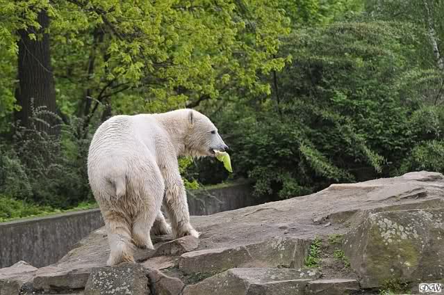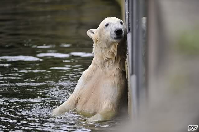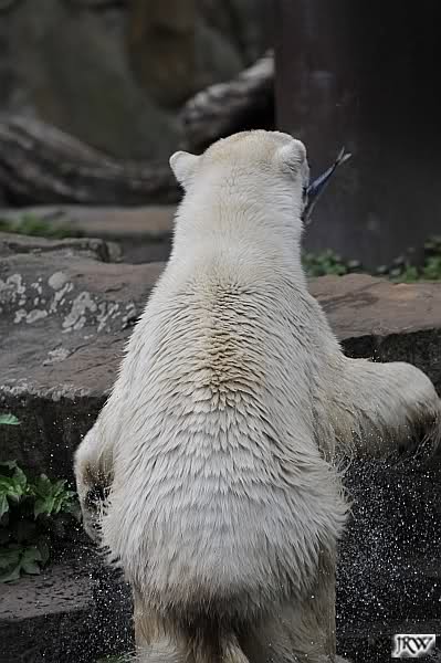 Die Fütterung von Knut machte heute Frau Weckert, sie hatte auch schon die Eisbärenfütterung am Vormittag gemacht. So wie immer in letzter Zeit ließ Knut keinen Krümel für Gianna übrig. Auch ´ne Art, dass Liebe durch den Magen geht…