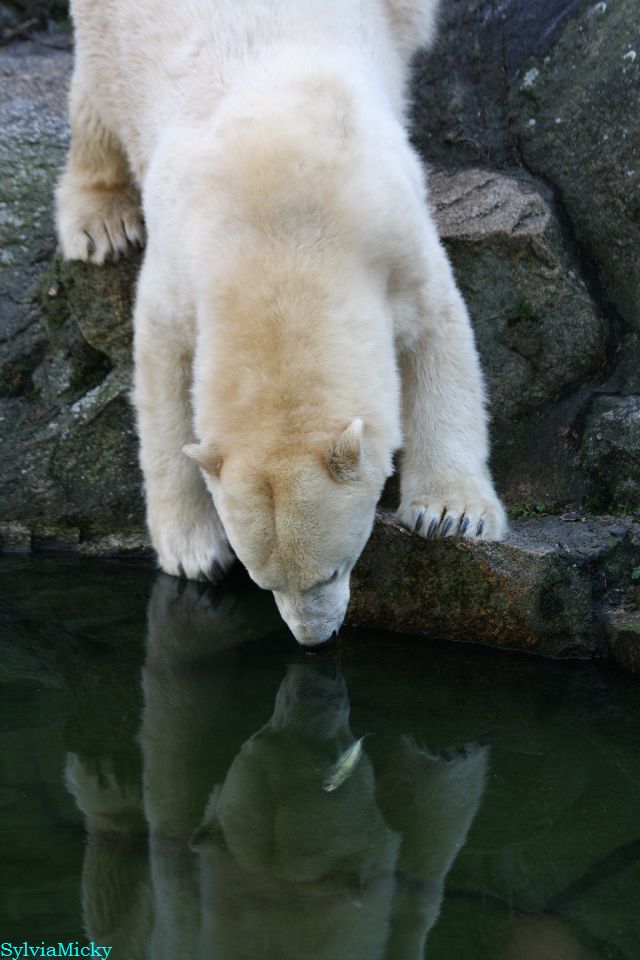 Ich denke manchmal, daß Knut so trinken will. Er kommt aber nicht an das Wasser ran