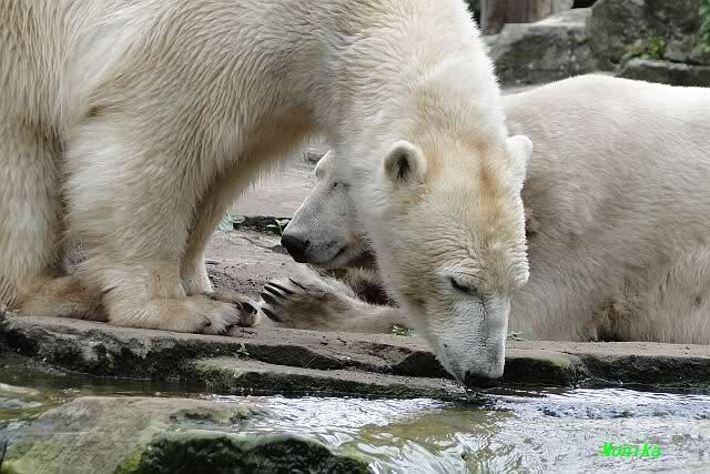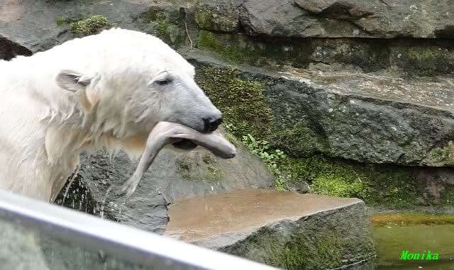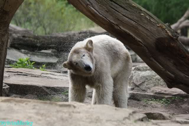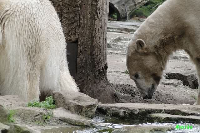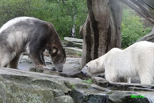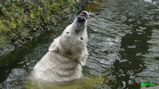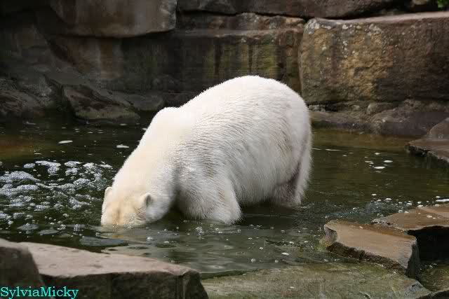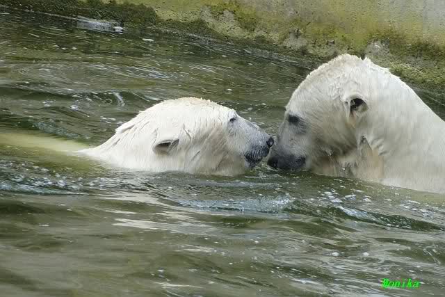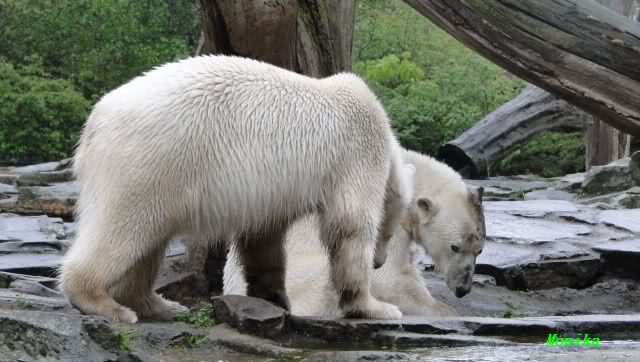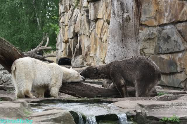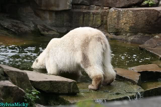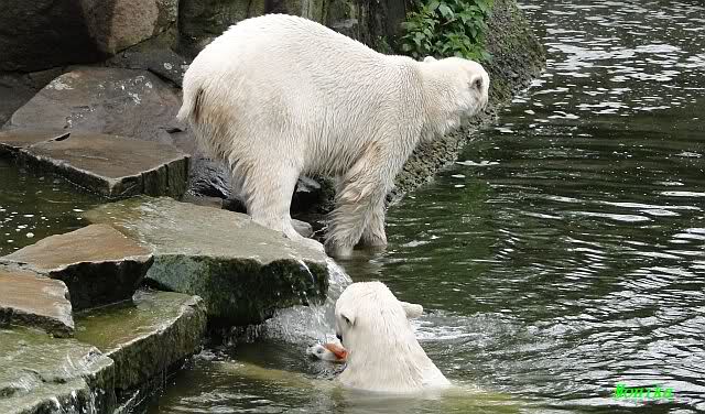 Auch ich war heute Nachmittag im Zoo und konnte wieder die Verwandlung Knuts von einem Eisbären in einen Schwarzbären beobachten. Davon wird es auch ein Video geben, aber ob es heute noch klappt ? Zuerst wird es ein Video von Knuts Mutter Tosca im *Berliner Zoo* Thread geben. Die Eisbärweibchen Tosca und Nancy spielten eine lange Zeit zusammen im Wasser.