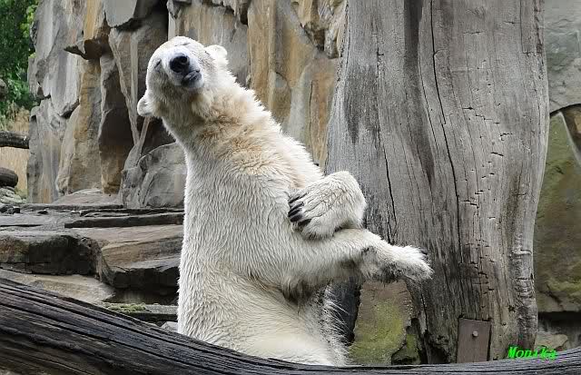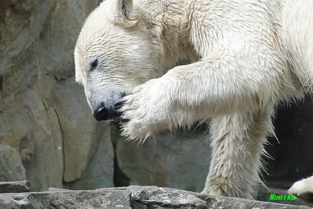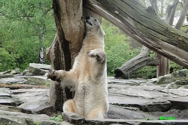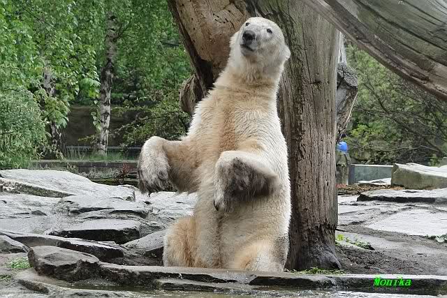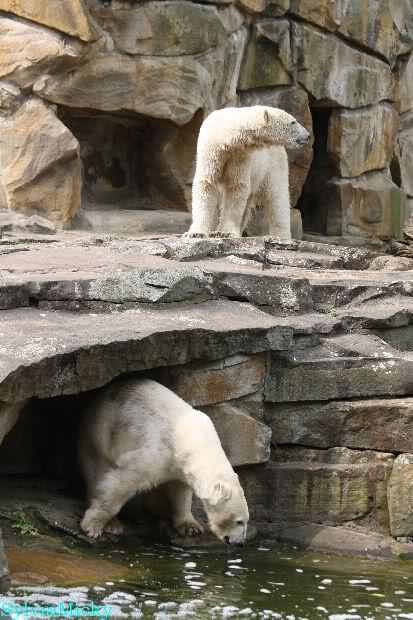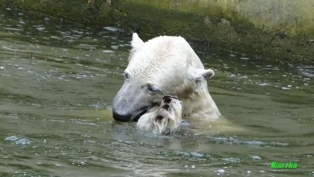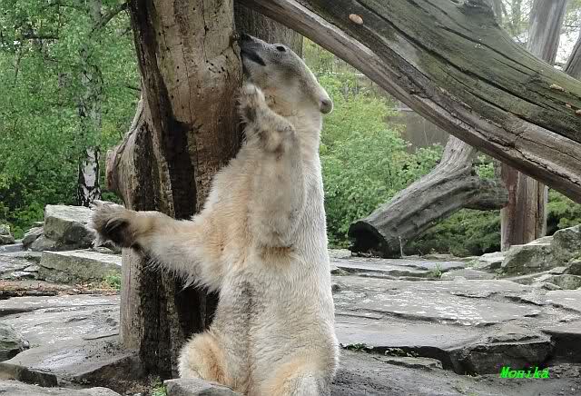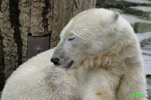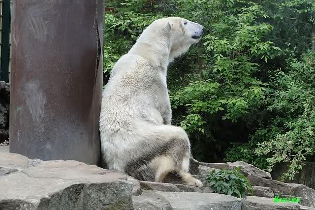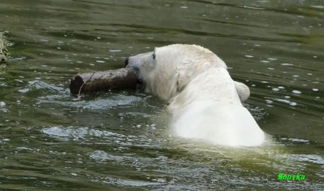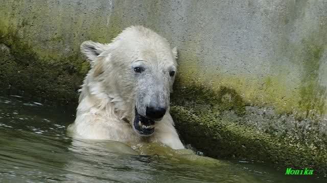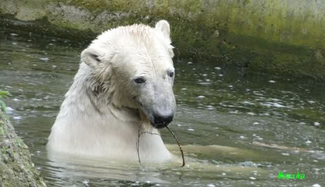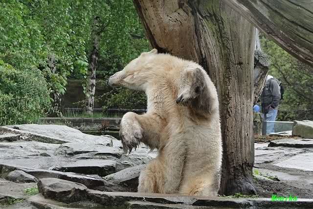 Auch ich war heute Nachmittag im Zoo und konnte wieder die Verwandlung Knuts von einem Eisbären in einen Schwarzbären beobachten. Davon wird es auch ein Video geben, aber ob es heute noch klappt ? Zuerst wird es ein Video von Knuts Mutter Tosca im *Berliner Zoo* Thread geben. Die Eisbärweibchen Tosca und Nancy spielten eine lange Zeit zusammen im Wasser.