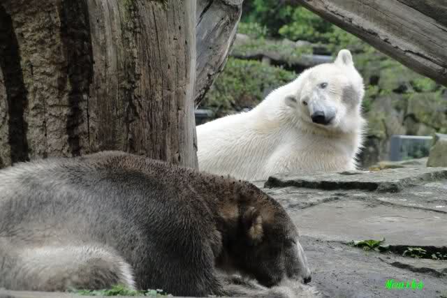Good evening, good night, good morning to you all international Knut & Giovanna friends. We got a lot pictures from the two bears today. Thanks to all our photographers. Especially to Doris & Jessie, back in Zoo again.