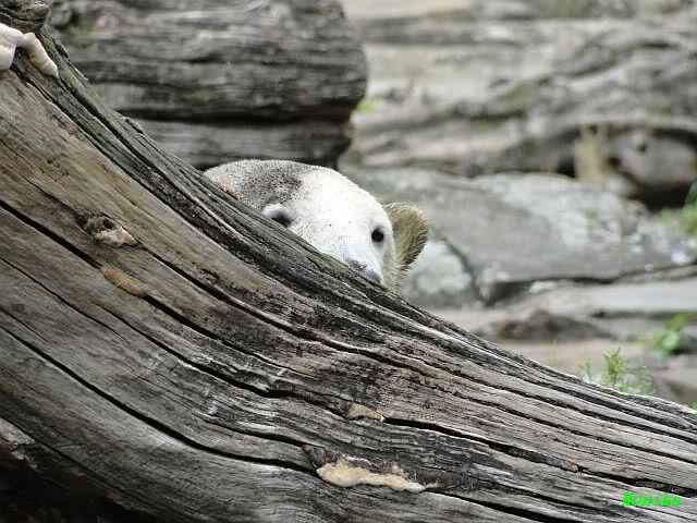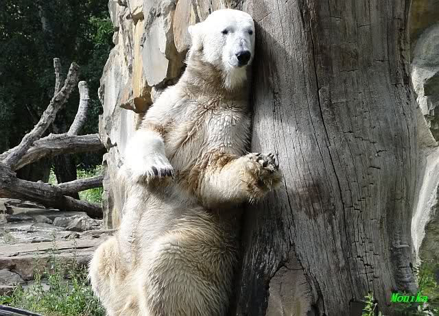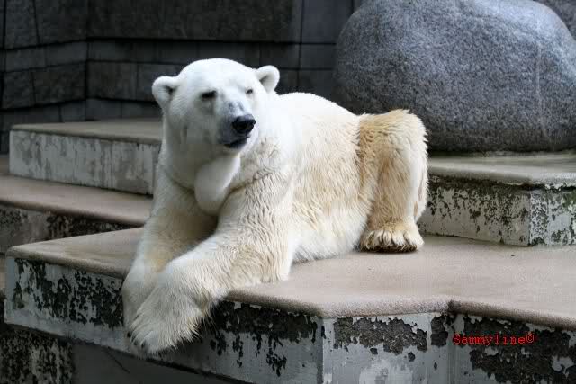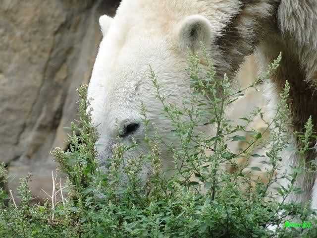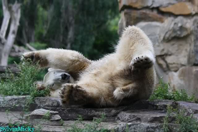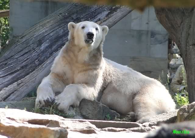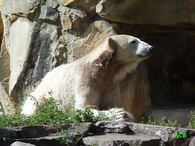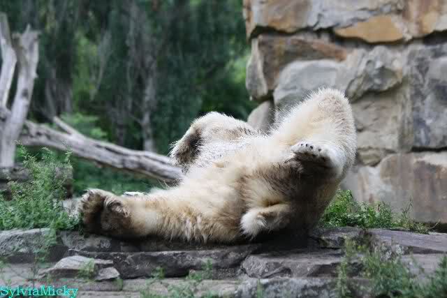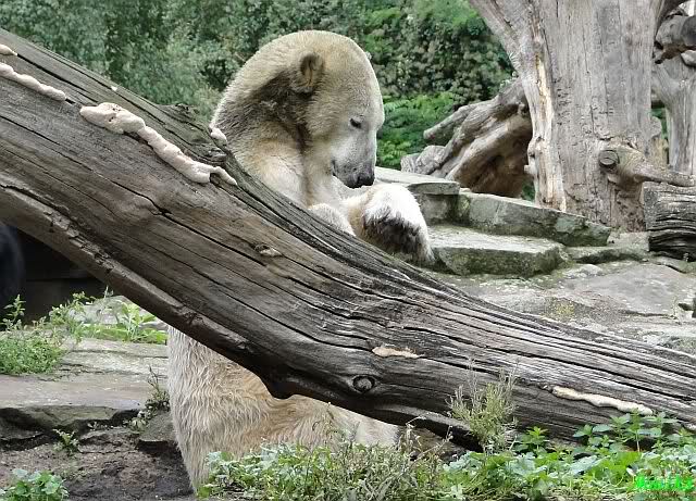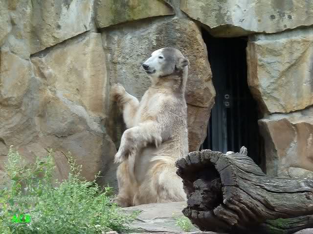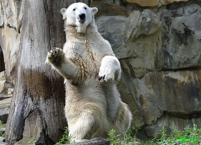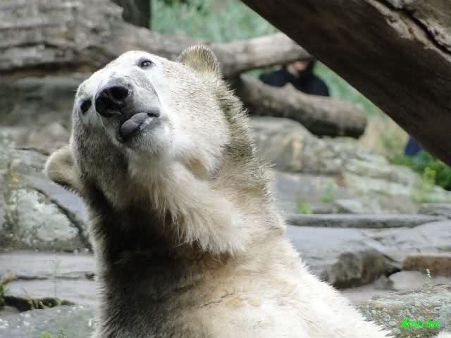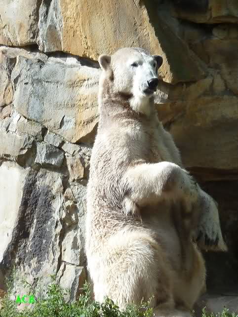 Heute Nachmittag kam ich (Anne)bei strahlendem Sonnenschein in den Zoo,wohin?,natürlich zu Knut, denn das brauchte ich nach dem schweren Dienst (auch "Rentner" gehen arbeiten)Immer wieder erfreut es mein Herz, wenn sooo viele Menschen bei Knuti stehen, und sich an ihm erfreuen. Da lag er in seiner Sand Kuhle und sonnte sich ganz genüsslich. Er sah so klein und Schutz befohlen aus, ja, er ist halt doch noch ein Halbstarker. Gegen die drei Mädels ist er ja noch sehr klein, und ich mag gar nicht daran denken, dass er es mit diesem eingespielten Trio aufnehmen muss!!! Schön, das von Nah und Fern so viele liebe Knut-Fans angereist sind, herzlich willkommen in Berlin bei unserem Star "Knut"!!! Nicht war, es lohnt sich immer wieder, egal wie weit man fahren muss, denn Knut ist doch jede Strapaze wert, oder??? Liebe Gisela-Sylvia-Monika "DANKE" für die wunderschönen Bilder!!! Am besten haben mir die gefallen, wo er so richtig "rum-fleetzt", einfach das Bären Leben genießen, so lange es noch geht in "seinem Paradies"!!!