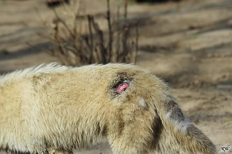 Siesta bei den Wildhunden. Ein Tier humpelt sei einigen Tagen sehr stark