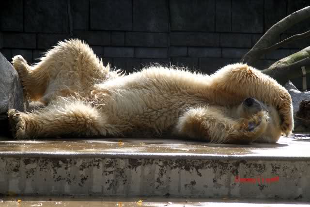 Eines muss ich aber noch ganz schnell erzählen. Am 22.08.2010 hat unser sibirisches Tigerpärchen Nachwuchs bekommen. Leider hatte die Mama keine Lust den Kleinen zu versorgen. Da haben sie ihn einfach mit dem Fläschchen großgezogen. (Genau wie meinen kleinen Knut damals) Heute ist Tschuna der Stolz aller Pfleger und Besucher. Täglich darf man ihn für ganz kurze Zeit am Kiosk anschauen. Aber dann muss er auch schon wieder schlafen. Ich bin mir sicher, dass Sammyline Euch bald ein Bild mitbringen wird. Ich werde ihn darn erinnern.
