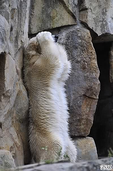Thanks for your entries, your greetings. Take a look to the pictures from today. Giovanna is sitting very relaxed on Knuts enclosure. I´m sure Knut and Giovanna were playing together within the next two weeks Step by step, day by day.