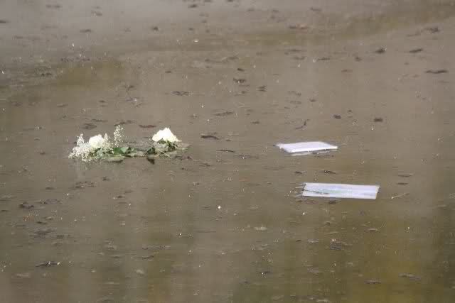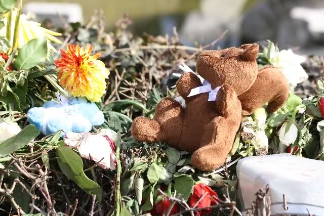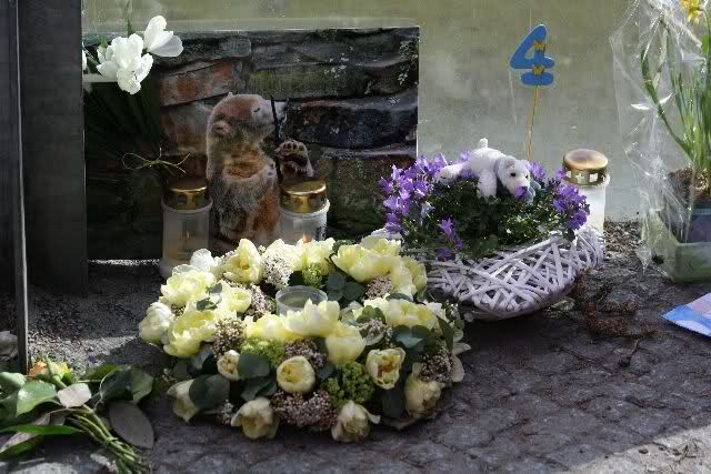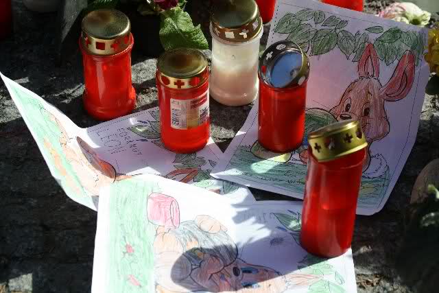 Auch heute wurden wieder viele Blumen, Briefe und Fotos an der Anlage abgelegt. Und viele Zeichnungen von Kindern.