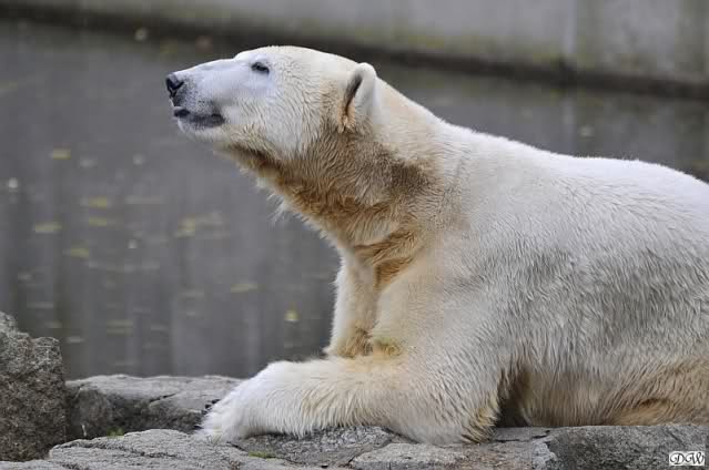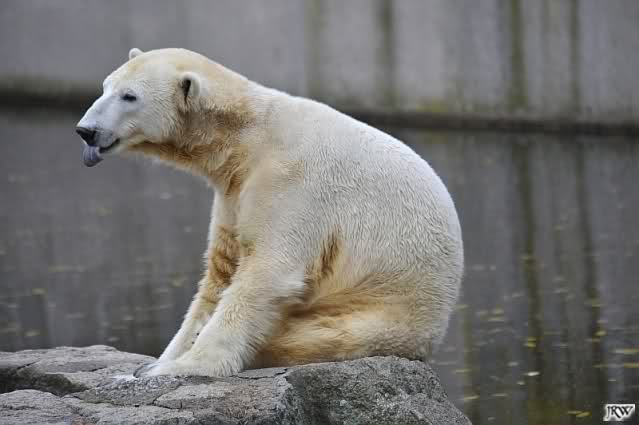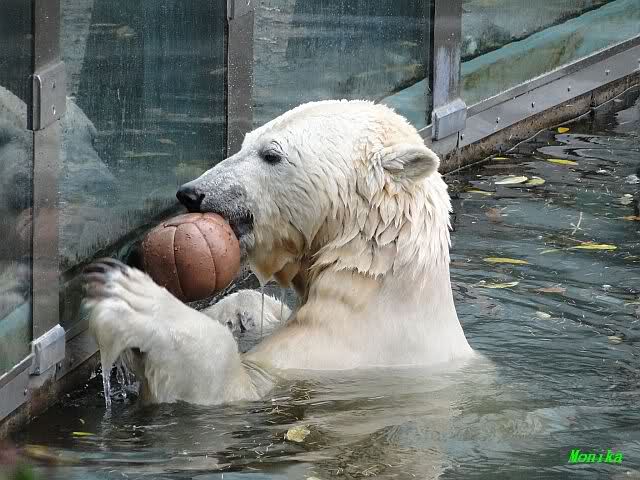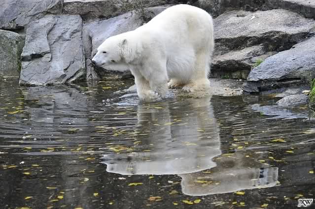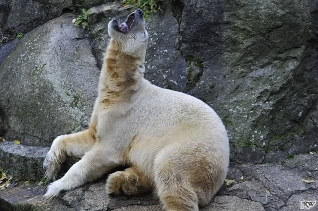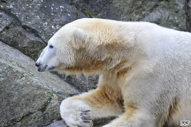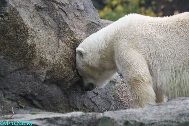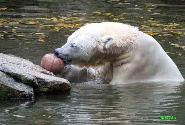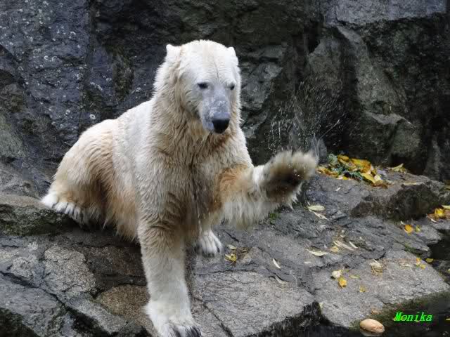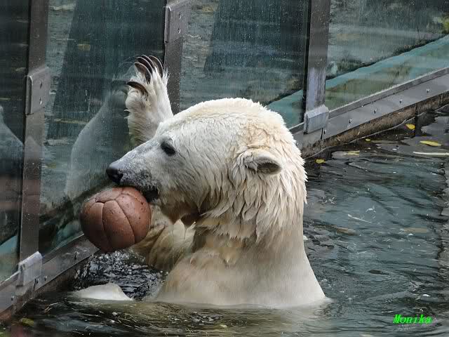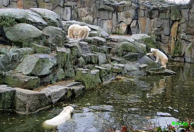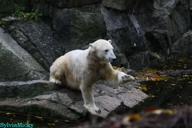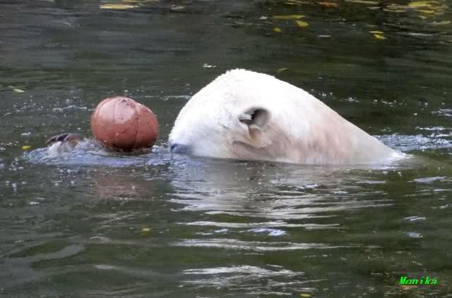 Ja, Knut ist immer wieder für eine Überraschung gut. Als ich um kurz vor 10.00 Uhr am Gehege eintraf, stand eine Dame gabz alleine dort und berichtete, dass Knut um 9.00 Uhr schon im Wasser war und schön spielte.