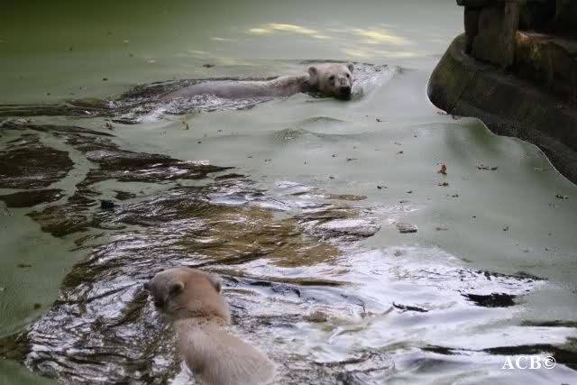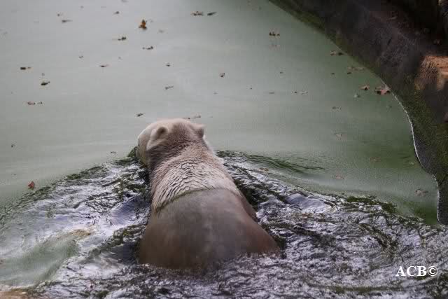 I´m posting some Knut pictures from yesterday. We had the chance to watch something we have missed a long time: Knut did play ball with his visitors He was alone on the enclosure that time.