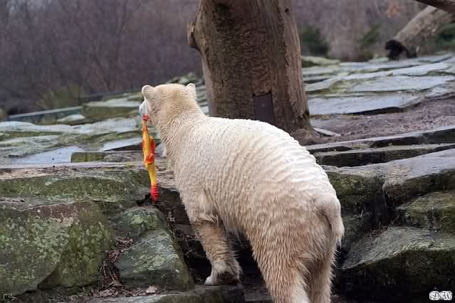 Heute waren schon viele nette Knutfreunde in Berlin zu Knuts 2 1/4 Geburtstag am morgigen Tage. Zur Nachmittagsspeisung gab es Fisch, Fleisch, Obst einen frischen Lachs und zum Abschluß noch ein großes Rosinenbrot, daß er sehr mag.