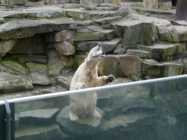 Ich ging gleich zu Knut. Der Süße wanderte auf seiner Anlage herum. Ich staunte, dass vor dem Gehege noch nicht viel los war, denn ich hatte bereits mit einigen auswärtigen Knutianern gerechnet. Aber es war ja noch früh am Tage.