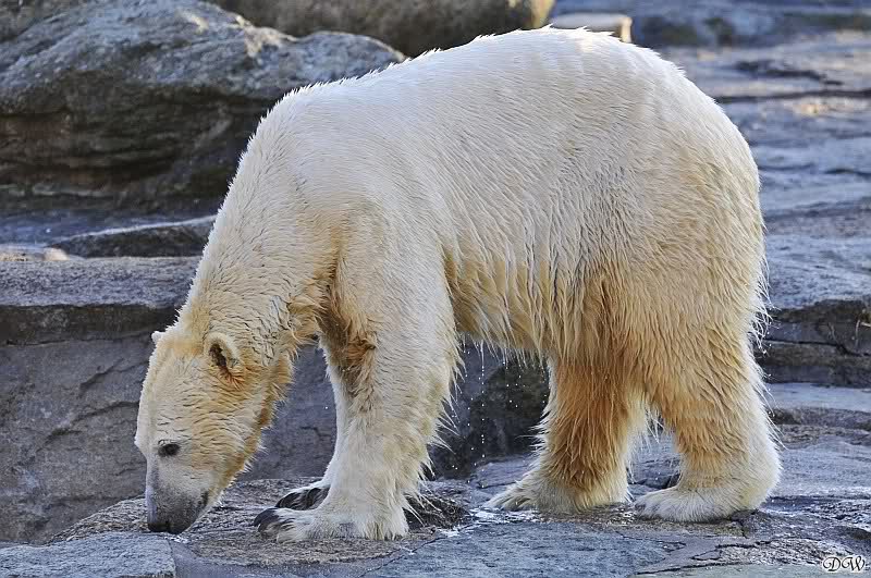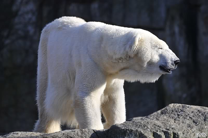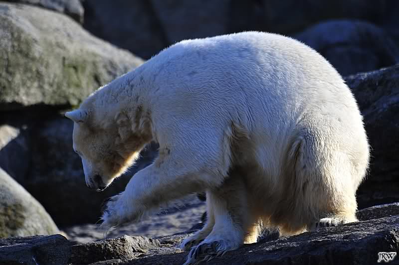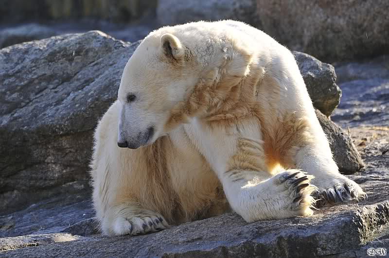 Wenn Knut auf seinem kleinen Felsenplätzchen liegt, wirkt er so klein und hilflos. Aber wenn er sich dann so am Felsen aufrichtet...nun ja, als klein dürfte das nicht mehr bezeichnet werden