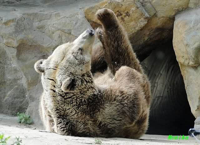 Tagsüber wo ich drin war im Raubtiehaus war Aketi neben Aru und die beiden kleinen waren in der Wurfbox wo sie wahrscheinlich wieder zu gefüttert wurden.Natürlich hat Aketi und die Babys heute was zum Essen bekommen, dass brauch auch die Mutter.Am Abend haben die beiden Kleinen im Stroch geschlafen und Aketi ist rum gelaufen.Sie hat sich auch mal an Ihrem Baumstamm mal gekratzt.