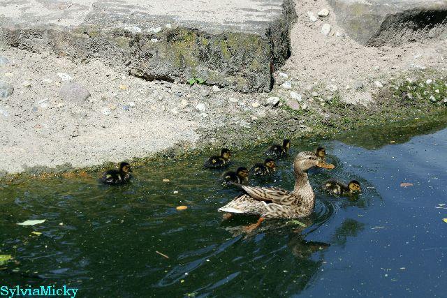 Die Entenfamilie hat gute Schanzen.