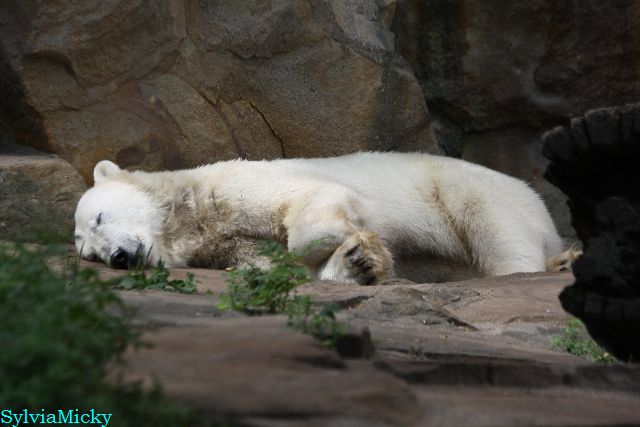Den heutigen Vormittag könnte man so beschreiben, Knut schlief und Gianna lief und lief. Knut ging kurz ins Wasser, sie hatte aber keine Lust dazu. Später färbte er sich wieder ein und schlief weiter.