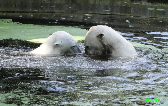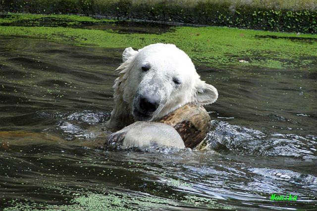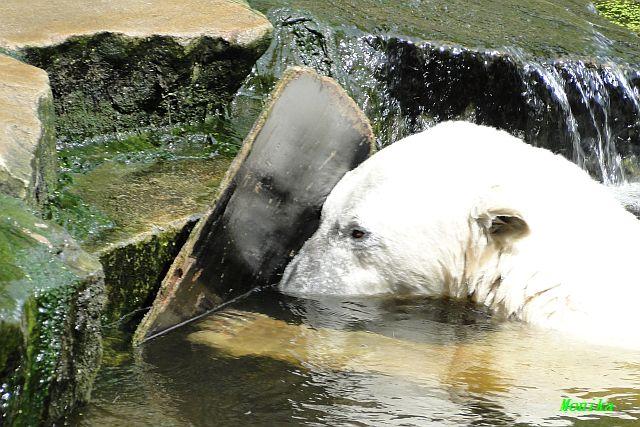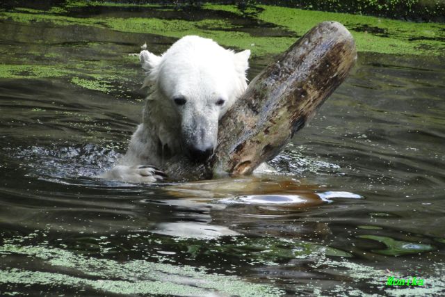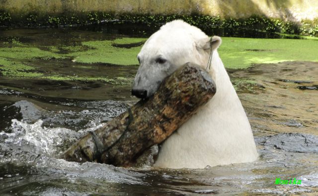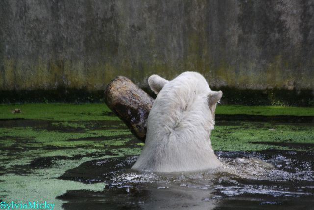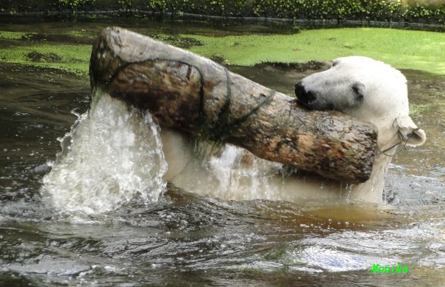 Heute Vormittag verbrachte Knut die meiste Zeit im Wasser und spielte fröhlich mit seinem Brett und dem Baumstamm. Auch der alte Ochsenschwanz kam ans Tageslicht. Gianna lief viel und ging auch mal kurz ins Wasser. Einmal ist sie Knut direkt auf den Kopf gesprungen. Hat ihm aber nichts ausgemacht.