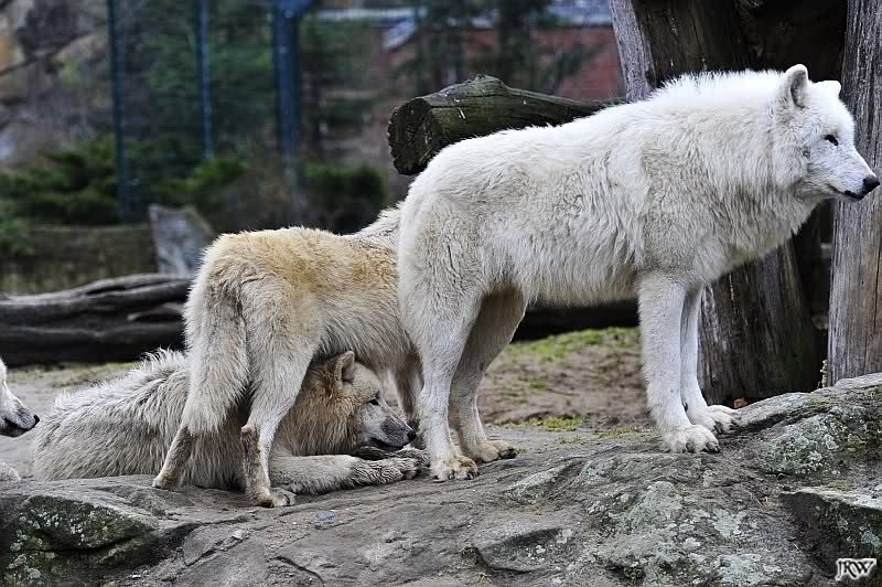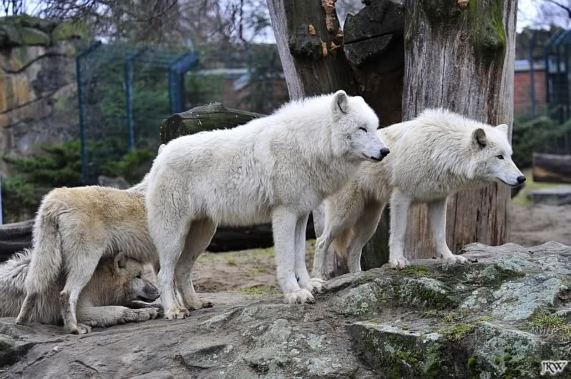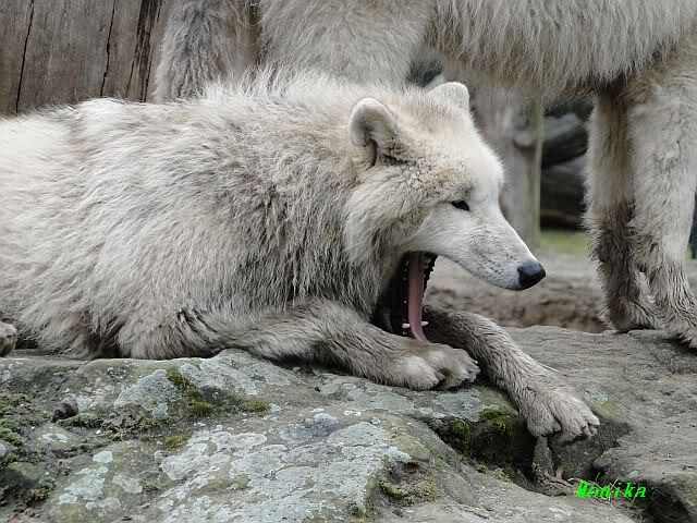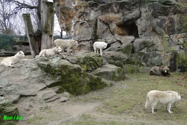 Die Wölfe waren auf ihrer Anlage ohne die Möglichkeit zu haben den Bären zu können. Von den Wölfen sah ich nur drei.