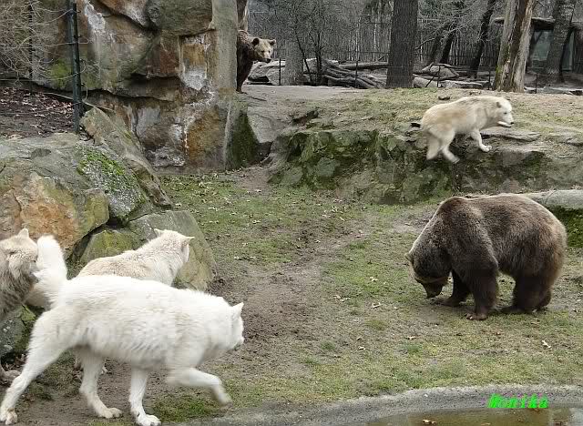 Das ist der nächste "Tierversuch!" Es ist unglaublich, wie man die schon älteren Bären mit dieser Wolfsmeute zusammen lässt. Das da irgendwann etwas passiert, ist doch vorprogrammiert.