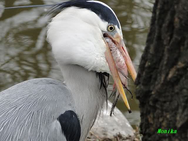 Der Fischreiher hatte mit dem großen Fisch ganz schön zu kämpfen.