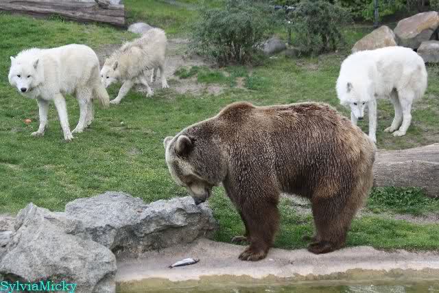 Mein Eindruck ist, daß die Wölfe Respekt vor den Bären haben. Außer bei der Fütterung.
