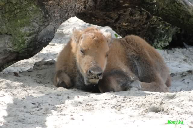 Das kleine Bisonkalb lag heute weit weg von seiner Mutter.