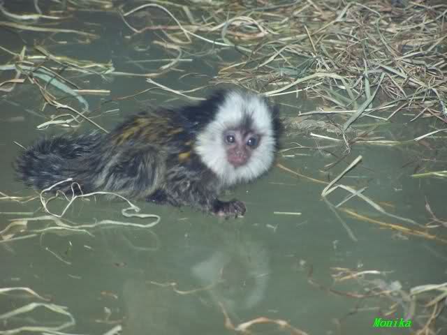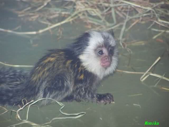 Das kleine Äffchen hat 2 Babys, die 4 Wochen alt sind. Auf dem Bild sieht man das eine kleine an der linken Schulter. Das zweite saß auf einen Stamm und plumpste auf die Erde. Dort saß es dann eine ganze Weile verschreckt, bis es den Weg zurück fand. Sie sind sooo süß.