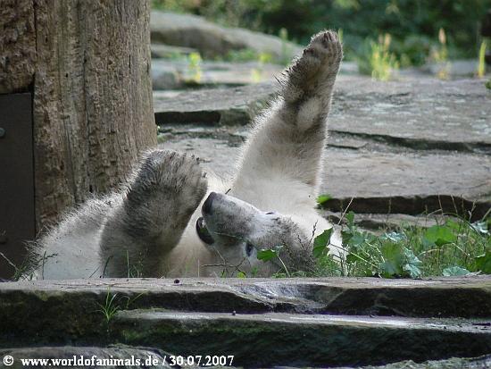 Vielen Dank fuer die schoenen Bilder von gestern. Ich kann mir durchaus vorstellen, dass der kleine Knut so lange rumgetanzt hat, bis er umfiel! Der ist nach wie vor knuddelig und suess! Wuerde ihn gern mal im Zoo selber sehen, aber bis dahin wird er schon erwachsen sein.
