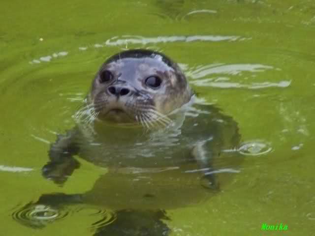 Yeo hat ja in ihrem Zoobericht schon von dem kleinen Seehundmädchen "Mandy" gesprochen, die im Juli 2009 geboren wurde. Hier ist sie. Ich kann Yeo verstehen, die kleine ist wirklich sehr niedlich mit ihren großen Knopfaugen. Wir haben heute bemerkt, dass sie auf ihren Namen hört. Als wir sie gerufen haben, kam sie angeschwommen und guckte uns mit ihren Kulleraugen an. Einfach nur süüüß.