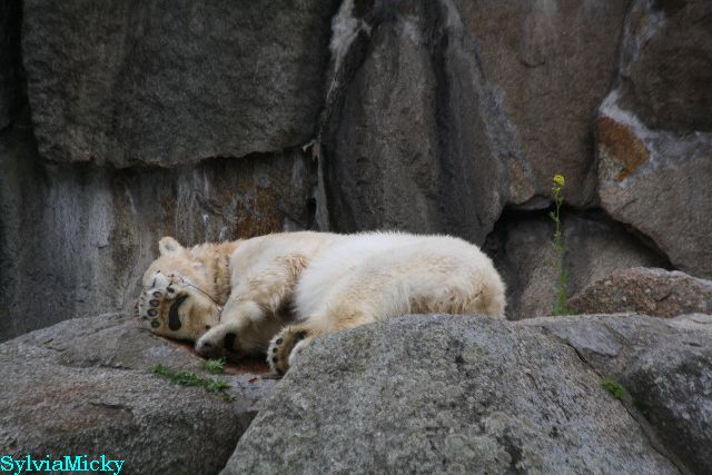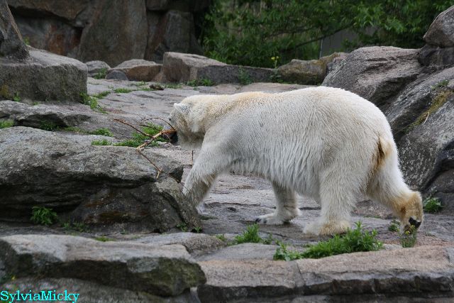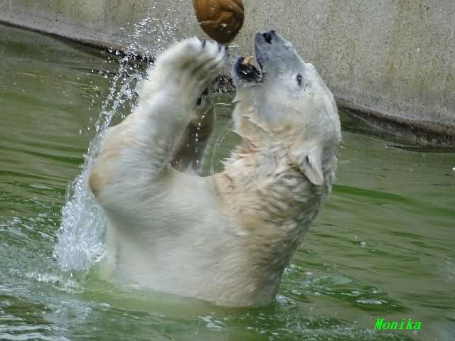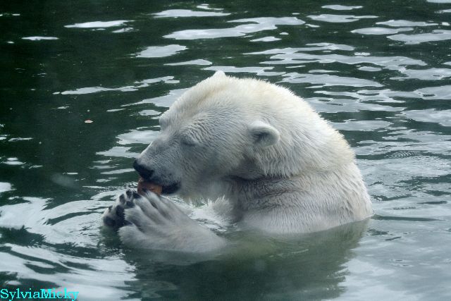 die extra für Zootiere konzipierten Spielzeuge von Knut lagern noch irgendwo hinter den Kulissen. Könnt Ihr Euch vorstellen, wieviel Spaß die Drei mit den Kugeln, dem Nackthuhn oder dem Spielzeug von Lars hätten? Oder mit einem Schubberbaum und etwas Naturboden auf dem sie sich wälzen könnten? Von ganzem Herzen wünsche ich mir, dass alle drei Eisbärinnen das noch erleben dürfen. Sie sind nicht mehr die Jüngsten.