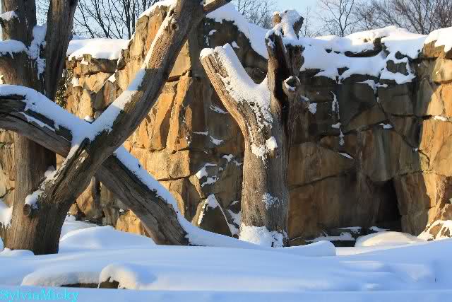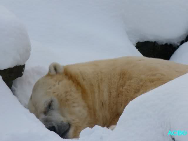 Im Tierpark ist es zZ. wunderschön. Die Eisbären Troll und Aika hätten allerdings mit etwas Beschäftigungsmaterial mehr Abwechslung. So lief Troll unentwegthin und her, während Aika in einer Schneekuhle lag und schlief.