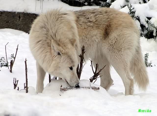 Der kleine Wolf (oder Wölfin) ist nicht nur groß geworden, er hat sich auch mächtig Winterspeck angefressen.