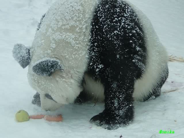 Bao Bao schmeckt`s auch bei Minus-Graden und Schnee.