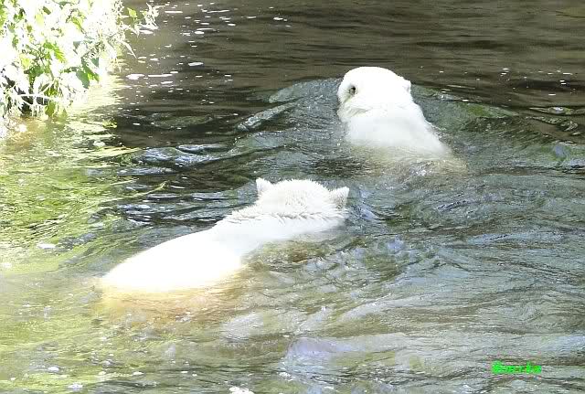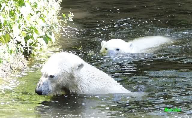 Das einzig positive das ich der Situation abgewinnen kann ist, dass Knut derjenige ist, der versucht Gianna zum spielen zu animieren. Gestern ist er ja öfter auf sie zu ins Wasser gesprungen. Aber was nützt es, wenn sie nicht reagiert?