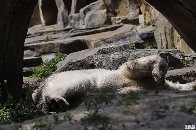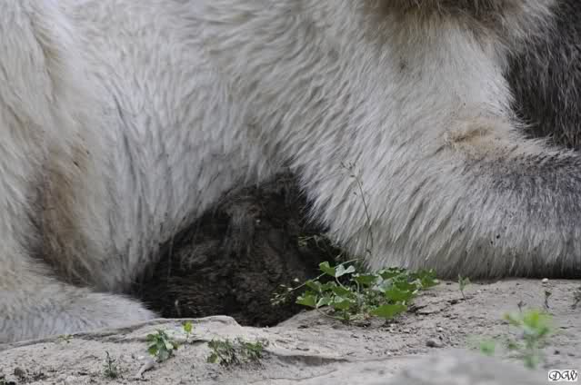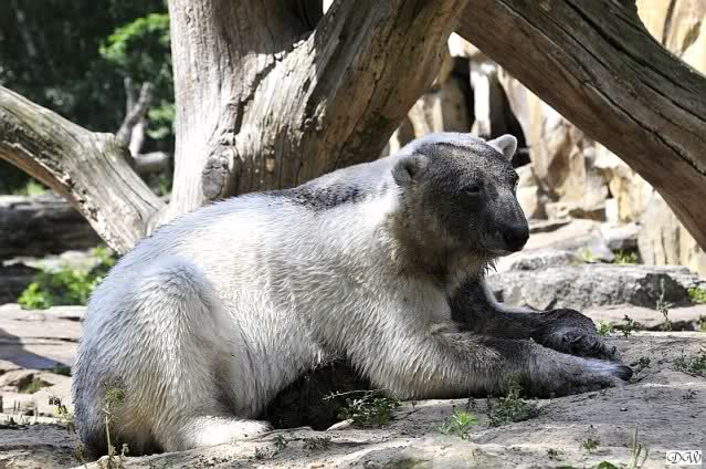 Knut besorgte sich in kurzer Zeit wieder einmal ein wunderschönes schwarz-weißes Muster. Jedenfalls genug um das Rätselraten einiger Besucher in Gang zu setzen. Weshalb ist Knut schwarz oder braun?