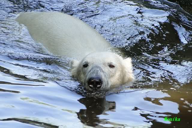 Monika, sie ist nicht mehr so panisch. Sie blieb auch öfters stehen, schaute den Lippenbären zu und schwamm auch länger im Wasser. Leider ist dies auf Fotos schwer zu sehen. Video ist besser.