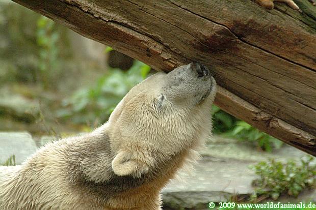 Gerade habe ich gelesen und gesehen, dass Knut wieder mit seinem Holzstamm spielt. Am Sa. dachte ich, er schaut das Ding nie wieder an.