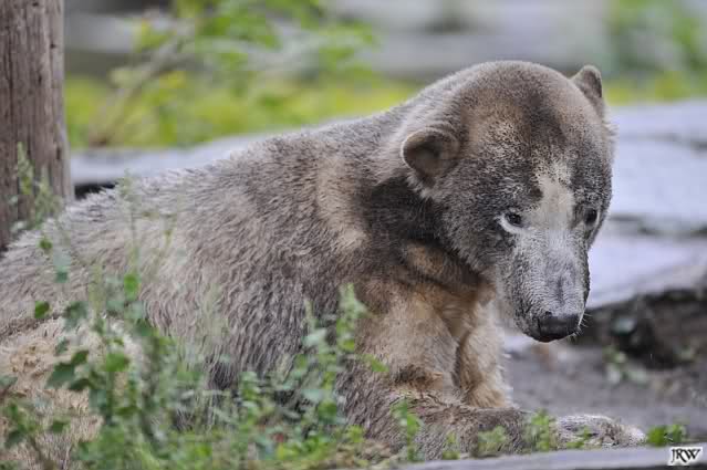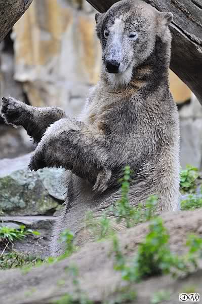 Heute war ich wieder im Zoo, zu dem trotz des schlechten Wetters doch viele Besucher den Weg fanden (nur nach Knut mussten sie wegen fehlender Ausschilderung weiterhin wie immer suchen). Zur Zeit der Fütterung regnete es, danach beruhigte sich die Wetterlage und am Abend schien sogar die Sonne. Mit 14 Grad am Tag war es aber etwas kühl.
